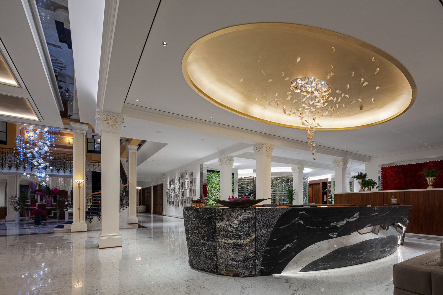 Chandelier was designed to the area of main reception in five star hotel Grand Resort Bad Ragaz in Switzerland, to welcome the visitors.