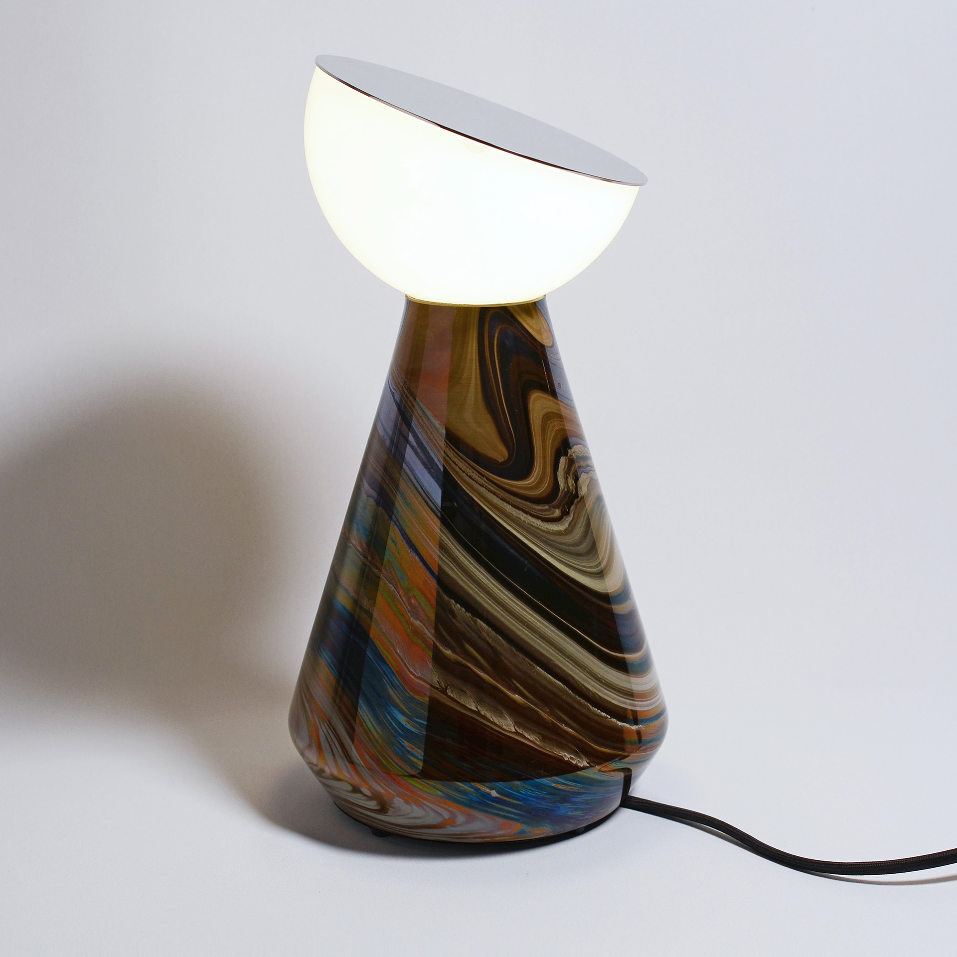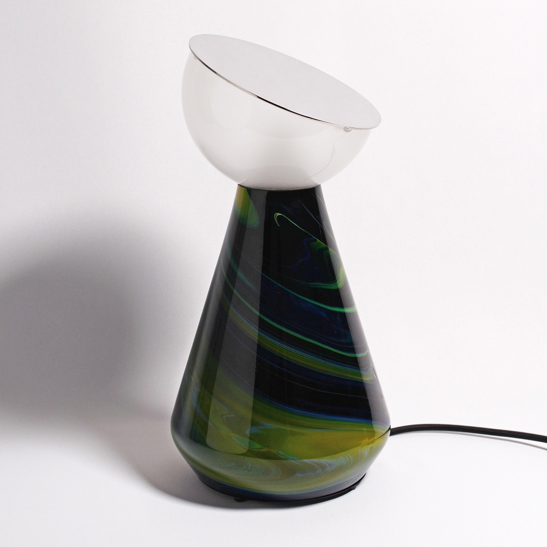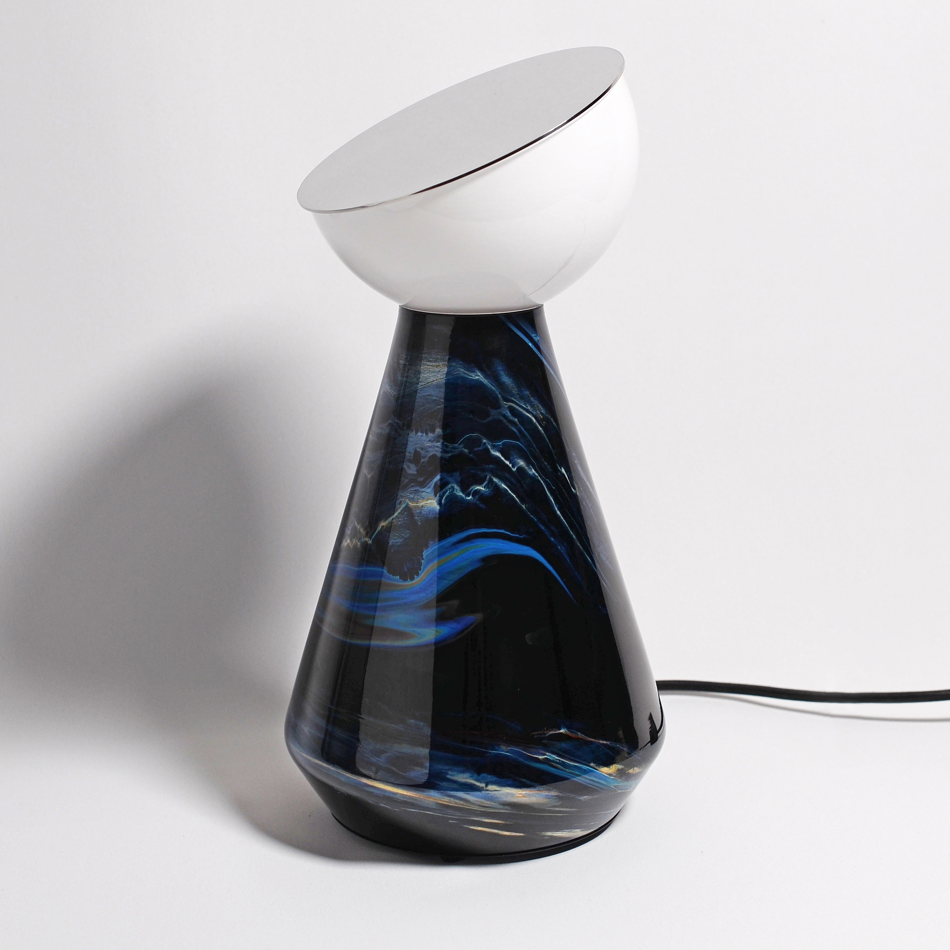 Table lamp Luna was designed using the fascinating and unique material - lithyalin. It is czech glass technology invented in Bohemia by Friedrich Egermann (1777-1864) The name of this mysterious glass comes from the similar look of the semiprecious stones. It was forgotten a long time ago, and reinvented again by company Glassbor s.r.o. by Václav Kuželka.