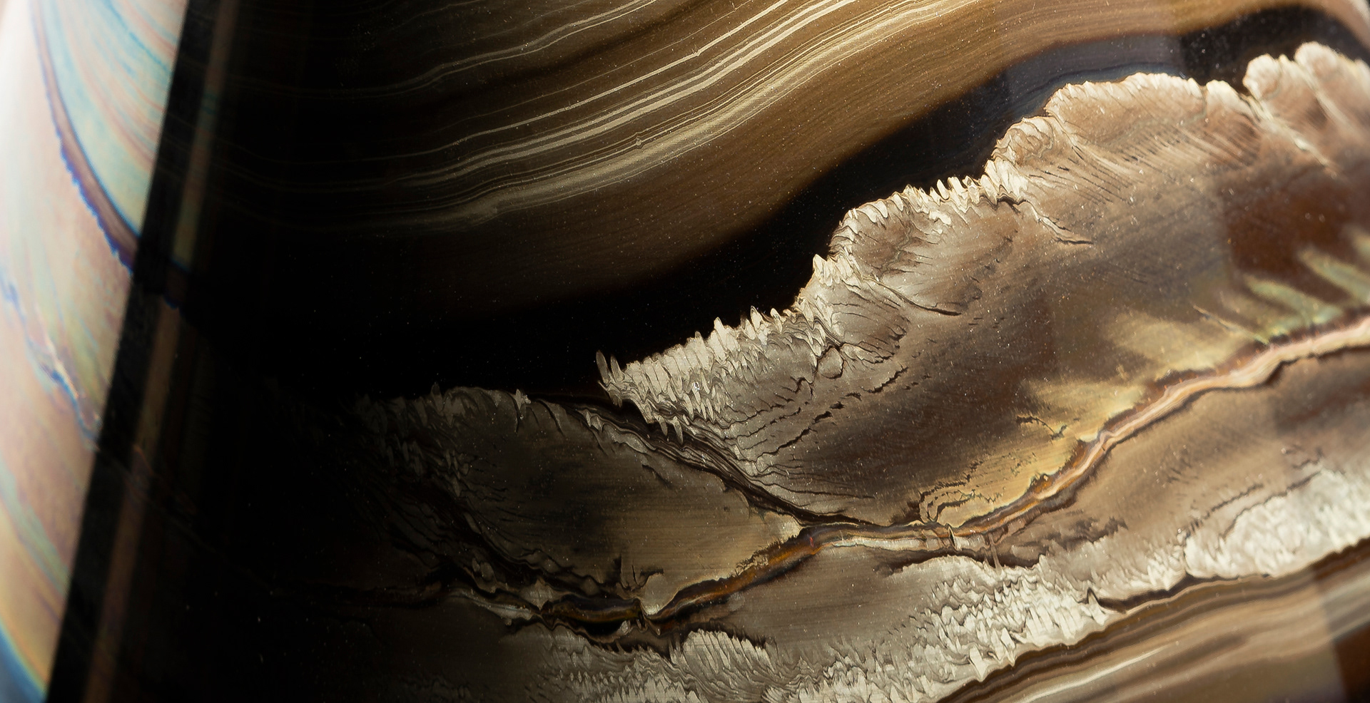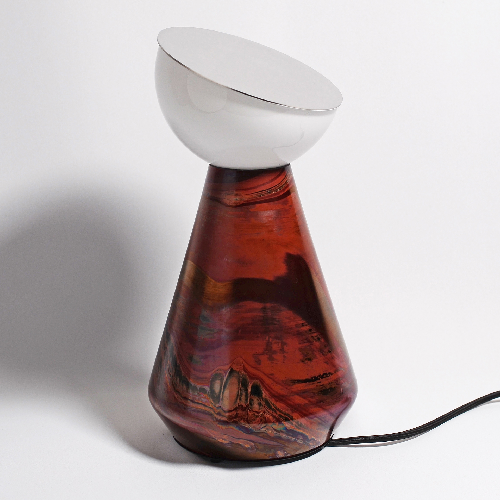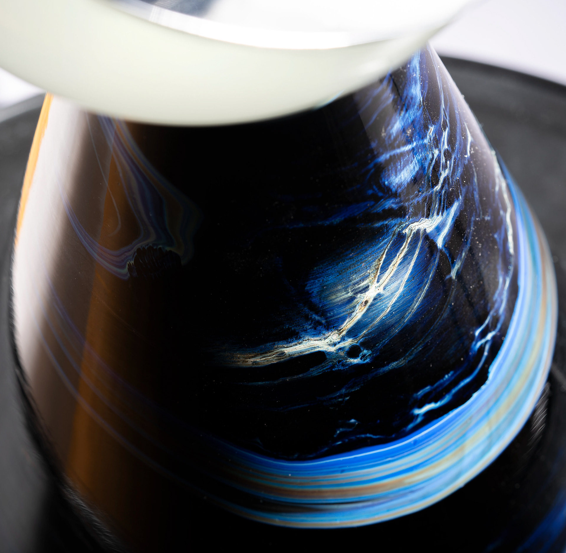 Table lamp Luna was designed using the fascinating and unique material - lithyalin. It is czech glass technology invented in Bohemia by Friedrich Egermann (1777-1864) The name of this mysterious glass comes from the similar look of the semiprecious stones. It was forgotten a long time ago, and reinvented again by company Glassbor s.r.o. by Václav Kuželka.